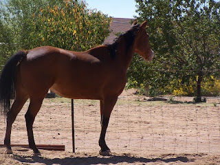 I try to trade pens with the ponies and my QH mare, Nita, frequently to help with the boredom for my equine friends. So Traveler and Stormy, the ponies went into Nita's pen and Nita went into the pony pen yesterday. We have a large pile of dirt in Nita's pen that we are gradually using to fill in low spots and places where the dirt is down to hardpan, that is like cement. The ponies were fasinated by that big pile of dirt.